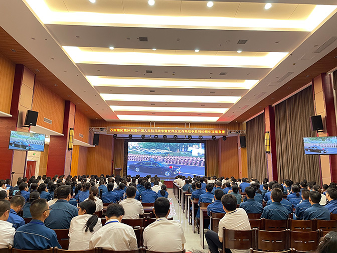 9月3日上午,萬洲電氣一樓多功能廳氣氛莊重而熱烈,萬洲集團(tuán)400余名在家員工齊聚一堂,集中觀看中國人民抗日戰(zhàn)爭暨世界反法西斯戰(zhàn)爭勝利80周年現(xiàn)場直播。