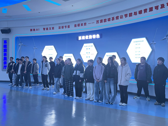 實習第一天,同學們首先參觀了公司廠區(qū),在一樓文化展示廳,創(chuàng)立之初的使命擔當、以人為本的企業(yè)文化、碩果累累的國牌榮譽、深耕節(jié)能的行業(yè)標桿,通過參觀讓同學們對萬洲有了全方位認知。在WOES節(jié)能系統(tǒng)演示廳,萬洲重大科技創(chuàng)新產(chǎn)品——智能優(yōu)化節(jié)能系統(tǒng)的研發(fā)歷程、優(yōu)勢特色、應用領域及未來發(fā)展吸引了同學們駐足觀看,并饒有興趣地現(xiàn)場體驗操作系統(tǒng)。