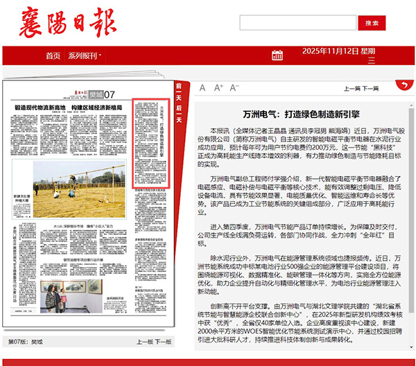 近日,萬洲電氣股份有限公司自主研發(fā)的智能電磁平衡節(jié)電器在水泥行業(yè)成功應(yīng)用,預(yù)計(jì)每年可為用戶節(jié)約電費(fèi)約200萬元,這一節(jié)能“黑科技”正成為高耗能生產(chǎn)線降本增效的利器,有力推動(dòng)綠色制造與節(jié)能降耗目標(biāo)的實(shí)現(xiàn)。